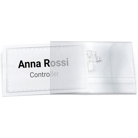 Lebez Porta badge semirigido, con clip e spilla, formato 65x30mm, 24pz