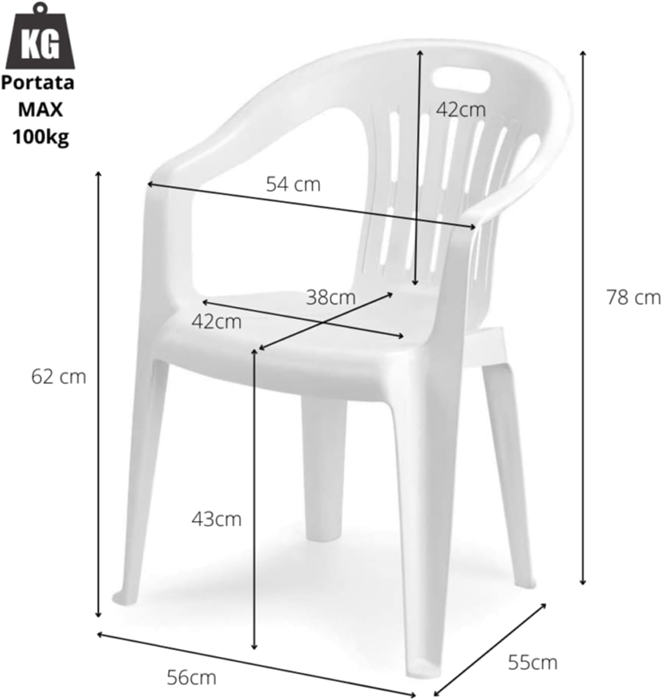 Sedia in plastica da giardino colore bianco dimensioni cm. 78,4P x 56l x 48H cm C92SEPL1